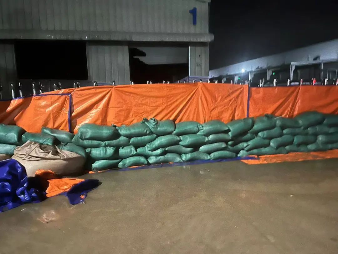 隨著洪水告急,越南永發(fā)在做好疏散演練和防洪提示后,宣布停工,疏散所有員工,并24小時收集全方位的災情預警及災害信息。9月11日晚,洪水持續(xù)蔓延,周邊許多公司廠房被淹,洪水也一度涌到了越南永發(fā)廠門口,但是公司員工提前壘起的沙袋墻,終將洪水擋在廠門之外。