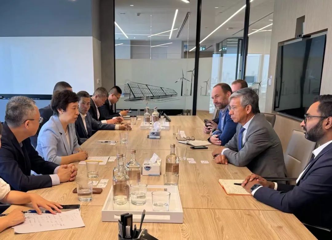 在馬克圖姆太陽(yáng)能公園四期950MW光熱光伏項(xiàng)目現(xiàn)場(chǎng),冷偉青詳細(xì)了解項(xiàng)目的投運(yùn)情況,并與上海電氣常務(wù)副總裁董鑑華帶領(lǐng)的團(tuán)隊(duì)就中國(guó)企業(yè)在海外新能源領(lǐng)域的發(fā)展展開(kāi)深入交流。冷偉青指出,馬克圖姆太陽(yáng)能公園項(xiàng)目是國(guó)際光熱光伏領(lǐng)域的標(biāo)桿,上實(shí)集團(tuán)要進(jìn)一步借鑒學(xué)習(xí)中國(guó)企業(yè)在境外項(xiàng)目的實(shí)施經(jīng)驗(yàn),穩(wěn)健探索境外新能源領(lǐng)域布局。在法國(guó)電力新能源公司(EDFR)中東和非洲地區(qū)總部,冷偉青會(huì)晤了企業(yè)副總裁Francois DAO先生,雙方圍繞光伏、風(fēng)能、綠色氫能等能源產(chǎn)業(yè)高質(zhì)量發(fā)展深入交流。冷偉青表示,在全球綠色低碳發(fā)展背景下,上實(shí)集團(tuán)愿與法電等國(guó)際合作伙伴在綠色低碳發(fā)展領(lǐng)域進(jìn)一步擴(kuò)大合作潛能。